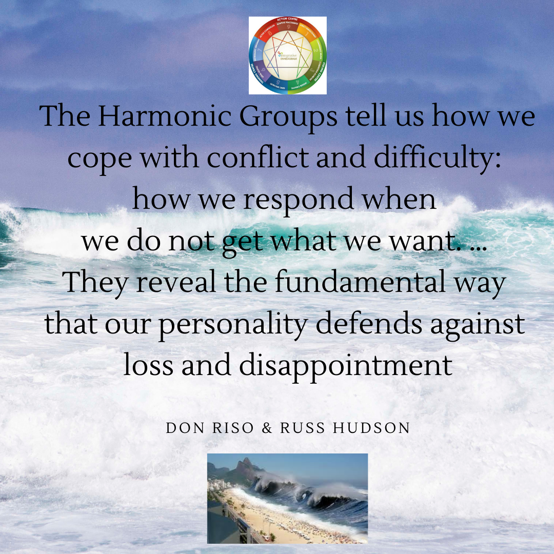 The Enneagram Harmonics Groups refers to a person’s dominant response to stressful situations, crisis and conflict. It shows the underlying similarity in how certain clusters of Enneagram patterns emotionally self-regulate and cope with obstacles and difficulties.